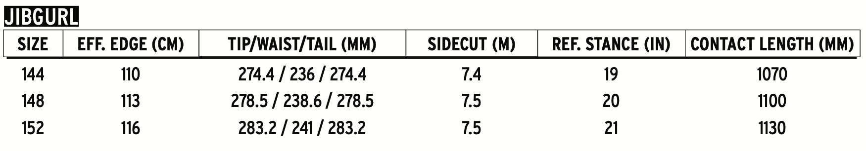 | SIZE | EFF. EDGE (CM) |